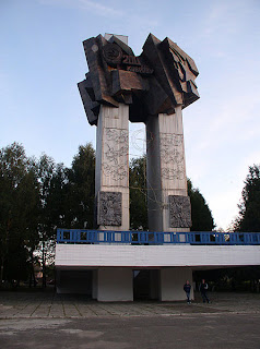 Справа - это памятник, установленный на центральной площади нашего города. Вырезала слои из книжных листов, потом наклеивала друг на друга.